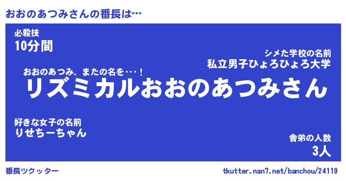 | 肩書あだ名 | 『おおのあつみ御曹司』 |