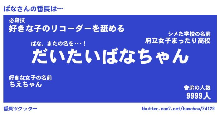 | ヒーロー風カッコイイあだ名 | 『スーパーバナ』『ウルトラばなマン』 |