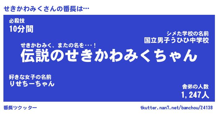 | ヒーロー風カッコイイあだ名 | 『スーパーセキカワミク』『魔戒騎士セキ』 |