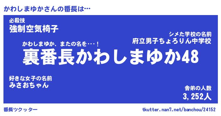 | ヒーロー風カッコイイあだ名 | 『スーパーカワシマユカ』『暗黒騎士カワ』 |
