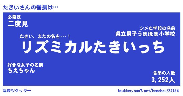 | 2回繰り返すあだ名 | 『たきたき』『たたきき』『ぬるぬる』 |