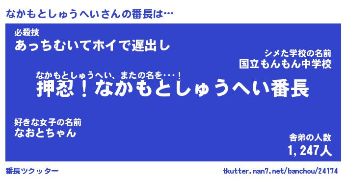 | 意味不明あだ名 | 『ペロリンなかもとしゅうへい』 |