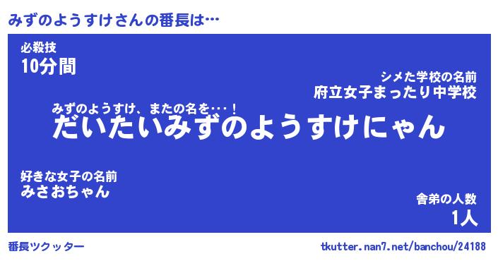 | 男性向けラノベタイトル風あだ名 | 『みずのようすけの憂鬱』 |