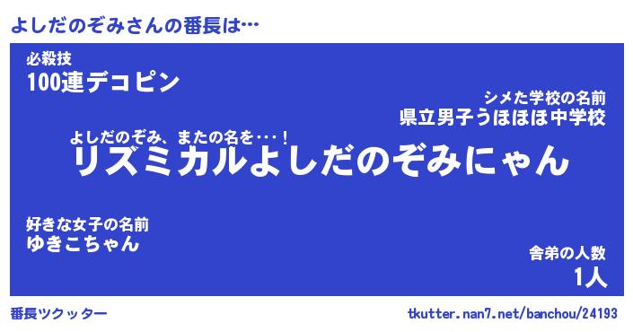 | ヘコむあだ名 | 『よしにー』『つくし』『よしお』 |