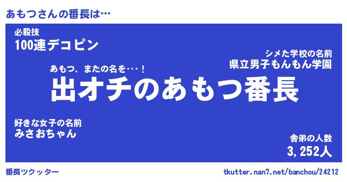 | ヒーロー風カッコイイあだ名 | 『スーパーアモツ』『ウルトラあもつマン』 |
