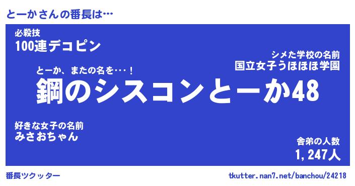 | 肩書あだ名 | 『とーか御曹司』『とーか国家主席』 |