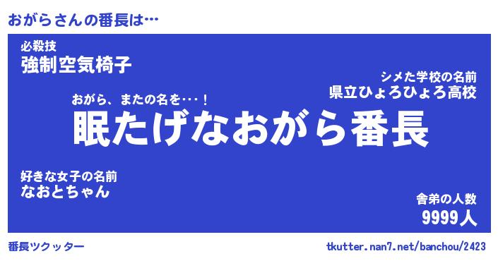 | 2回繰り返すあだ名 | 『おがおが』『おおがが』『がんがん』 |