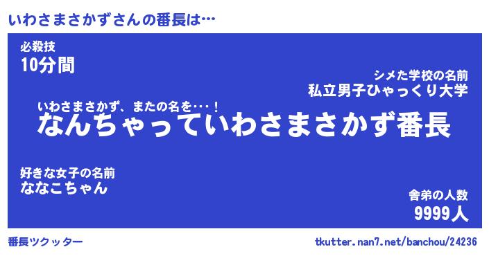 | 伝説のあだ名 | 『伝説のスナイパーいわさまさかず』 |