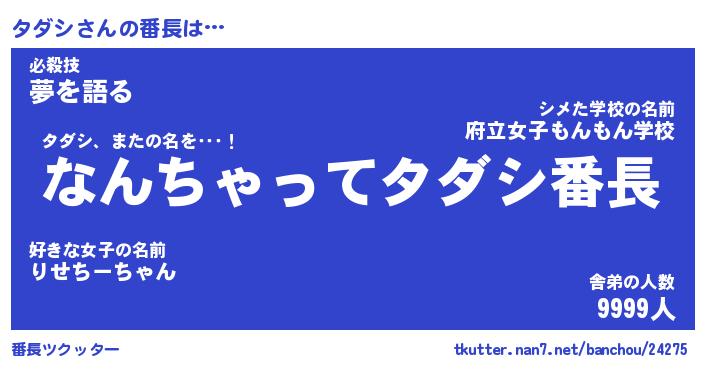 | 意味不明あだ名 | 『ペロリンタダシ』『タダシフォーエバー』 |