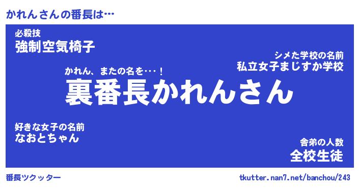 | ヒーロー風カッコイイあだ名 | 『スーパーカレン』『ウルトラかれんマン』 |