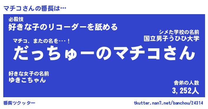 | 意味不明あだ名 | 『ペロリンマチコ』『マチコフォーエバー』 |