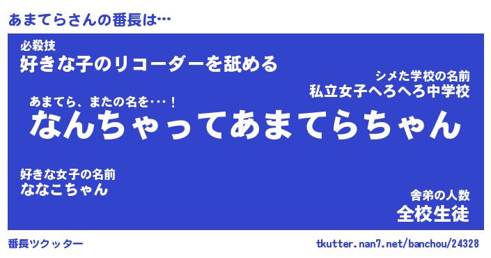 | 意味不明あだ名 | 『ペロリンあまてら』『永久保存あまてら』 |