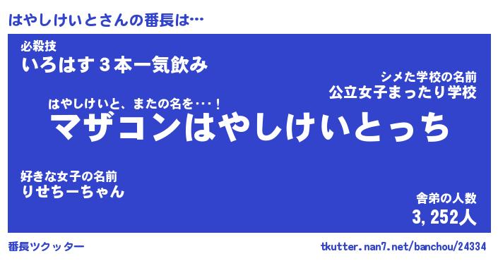 | 伝説のあだ名 | 『封印されしスナイパーはやしけいと』 |