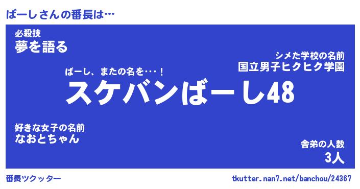 | ヒーロー風カッコイイあだ名 | 『スーパーバーシ』『ウルトラばーしマン』 |