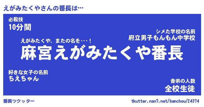 | ヘコむあだ名 | 『えがふぇ~』『つくし』『えがっ子』 |
