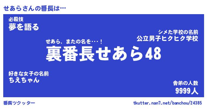 | 意味不明あだ名 | 『ペロリンせあら』『せあらフォーエバー』 |