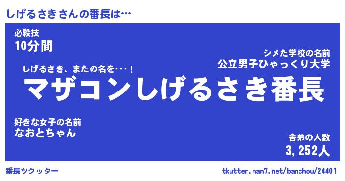 | 肩書あだ名 | 『しげるさき店長』『しげるさき国家主席』 |