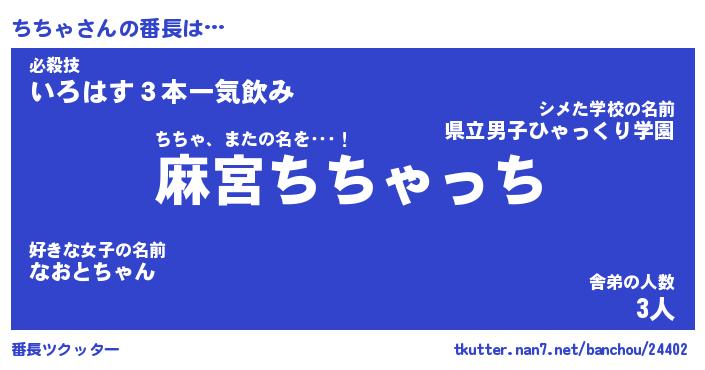 | 意味不明あだ名 | 『ペロリンちちゃ』『ちちゃフォーエバー』 |