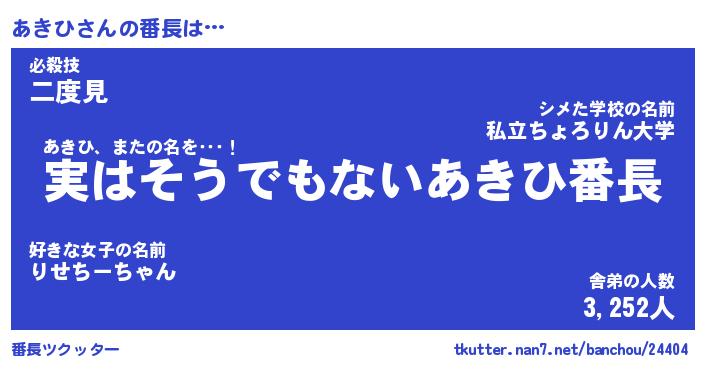 | 伝説のあだ名 | 『封印されしスナイパーあきひ』 |