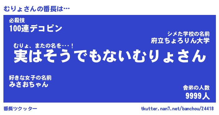 | 伝説のあだ名 | 『封印されしスナイパーむりょ』 |