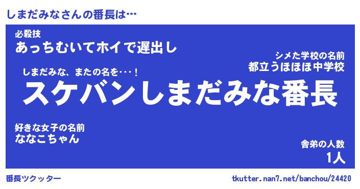 | ファンタジー風あだ名 | 『シマフェル』『エターナルシマダミナー』 |