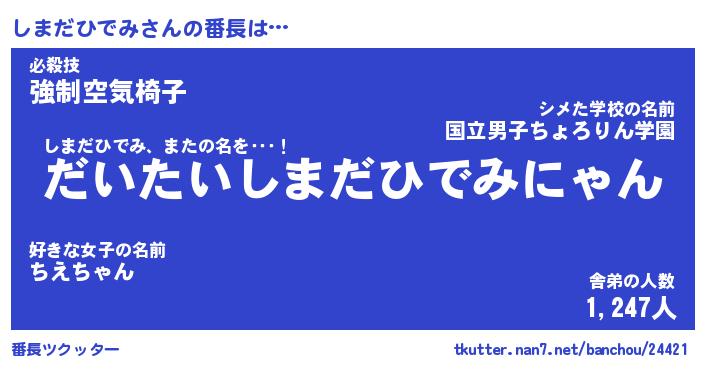 | 2回繰り返すあだ名 | 『しましま』『ししまま』『ぐちぐち』 |