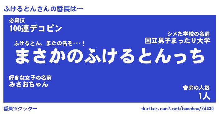 | ピコ太郎風あだ名 | 『フコ二郎』『ピフ一郎』『フケ五郎』 |