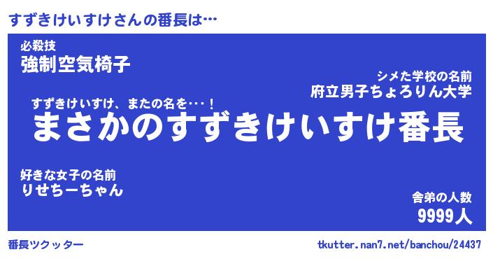 | ヒーロー風カッコイイあだ名 | 『スーパースズキケイスケ』 |