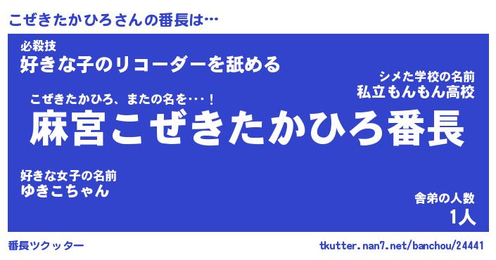 | 肩書あだ名 | 『こぜきたかひろ御曹司』 |