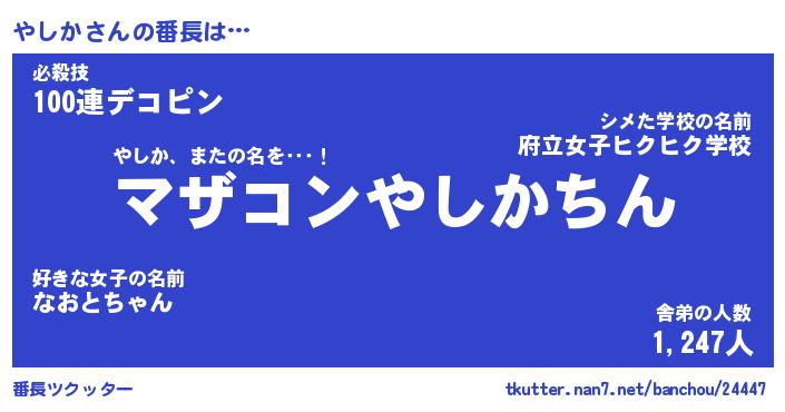 | 意味不明あだ名 | 『ペロリンやしか』『やしかフォーエバー』 |