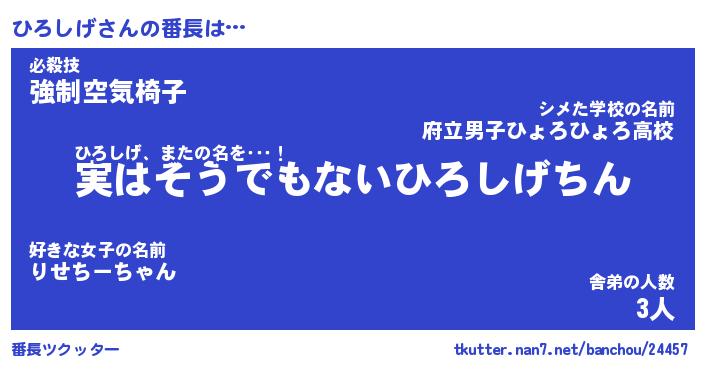 | ポケモン風あだ名 | 『ヒロチュウ』『ヒロシダネ』 |