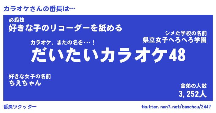 | 意味不明あだ名 | 『ペロリンカラオケ』『永久保存カラオケ』 |