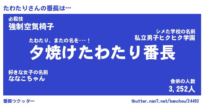 | ヒーロー風カッコイイあだ名 | 『スーパータワタリ』『暗黒騎士タワ』 |