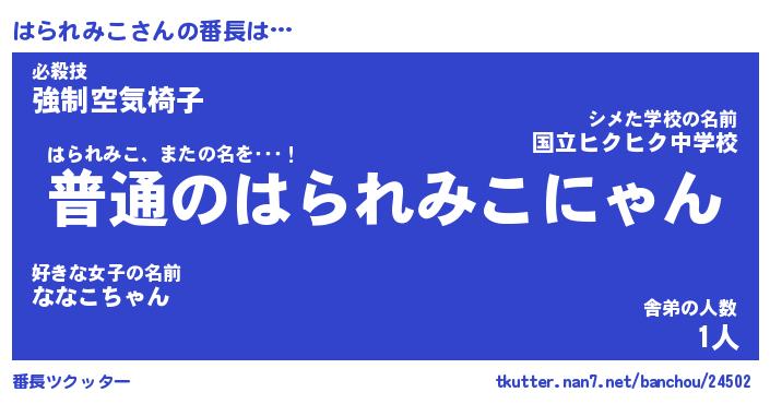| 男性向けラノベタイトル風あだ名 | 『はられみこの憂鬱』 |
