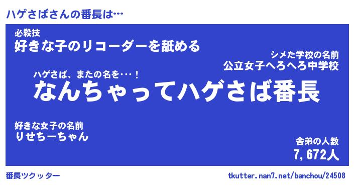 | 意味不明あだ名 | 『ペロリンハゲさば』『永久保存ハゲさば』 |