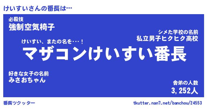 | 意味不明あだ名 | 『ペロリンけいすい』『永久保存けいすい』 |