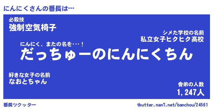 | ポケモン風あだ名 | 『ニンチュウ』『ニンニダネ』 |