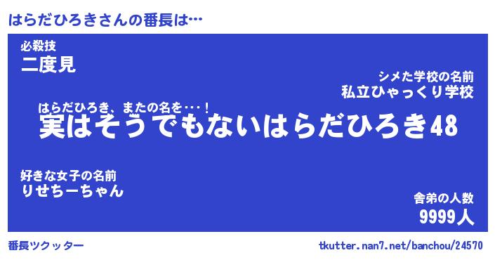 | 恥ずかしいあだ名 | 『プリティーはらだひろき』『はらっちょ』 |