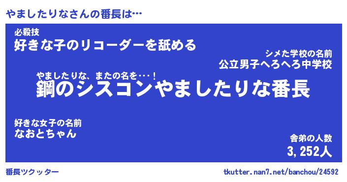 | 伝説のあだ名 | 『封印されしスナイパーやましたりな』 |