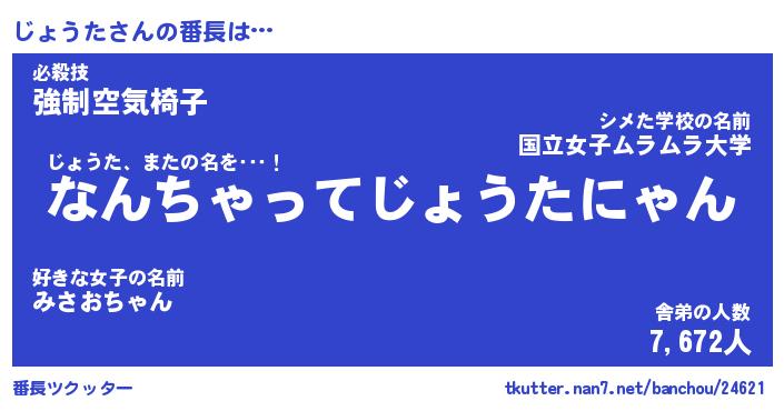 | 男性向けラノベタイトル風あだ名 | 『じょうたの憂鬱』 |