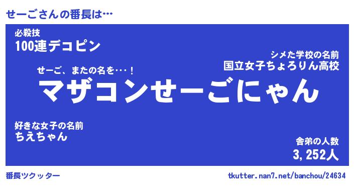 | 意味不明あだ名 | 『ペロリンせーご』『せーごフォーエバー』 |