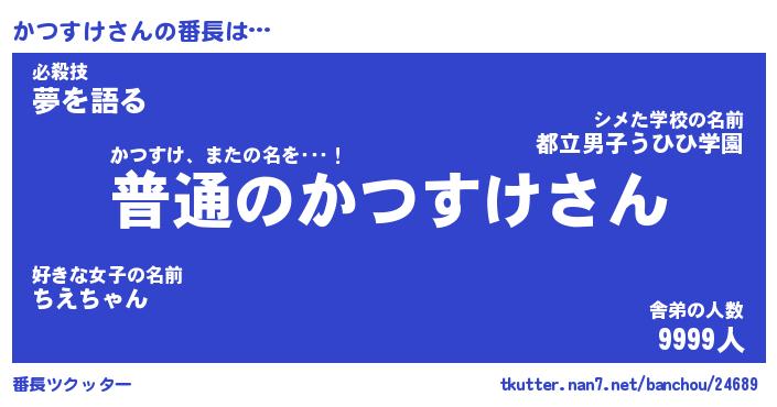| 肩書あだ名 | 『かつすけ御曹司』『かつすけ国家主席』 |