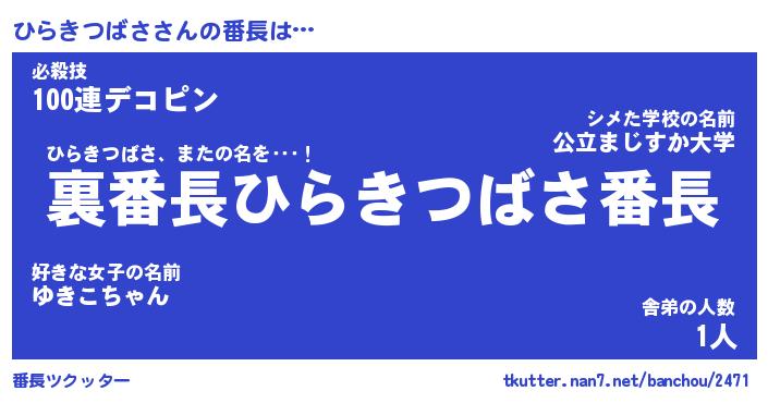 | 意味不明あだ名 | 『ペロリンひらきつばさ』 |
