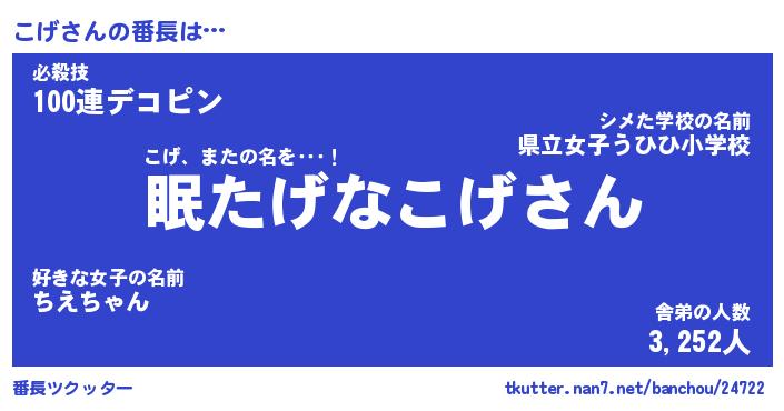 | 2回繰り返すあだ名 | 『こげこげ』『ここげげ』『ぬぷぬぷ』 |