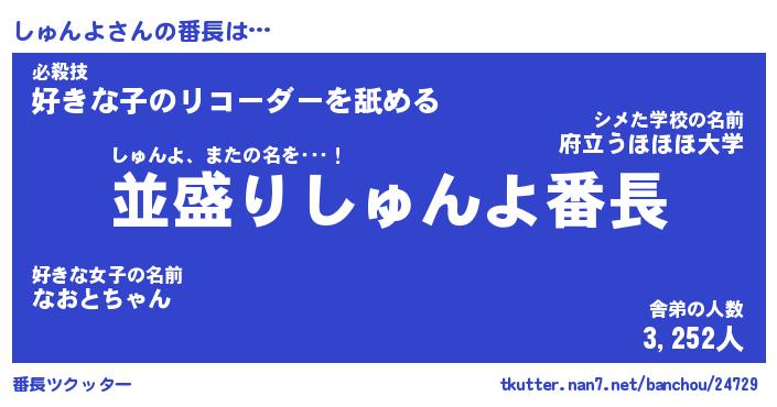 | ピコ太郎風あだ名 | 『シコ二郎』『ピシ五郎』『シュ八郎』 |