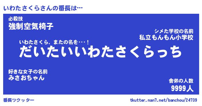 | 肩書あだ名 | 『いわたさくら店長』『いわたさくら団長』 |