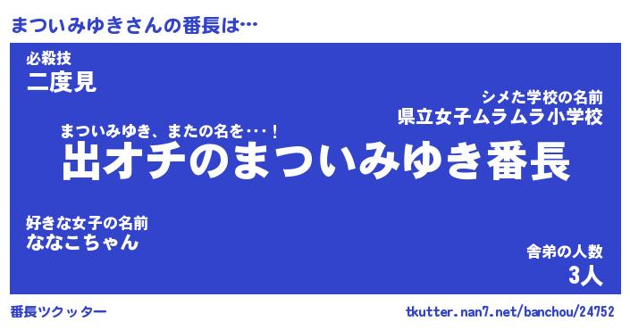 | 恥ずかしいあだ名 | 『プリティーまついみゆき』『まつっちょ』 |