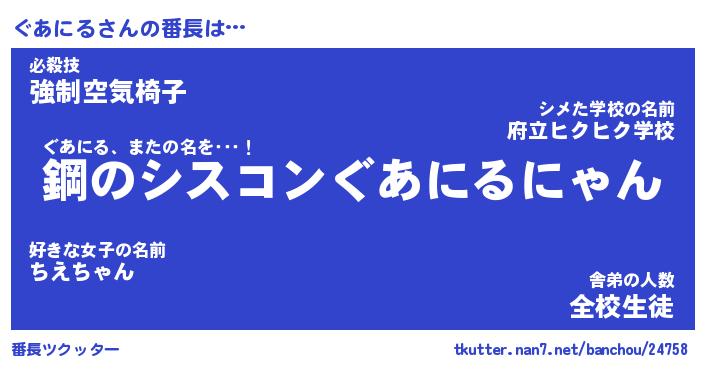 | 肩書あだ名 | 『ぐあにる御曹司』『ぐあにる大統領』 |