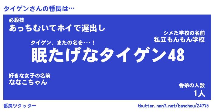 | 肩書あだ名 | 『タイゲン店長』『タイゲン総理大臣』 |