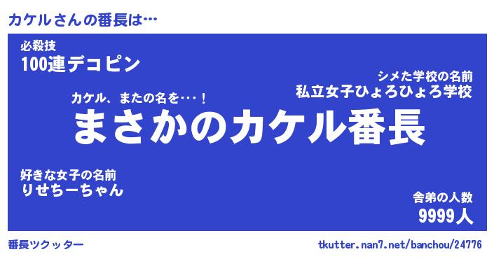| ヒーロー風カッコイイあだ名 | 『スーパーカケル』『ウルトラカケルマン』 |
